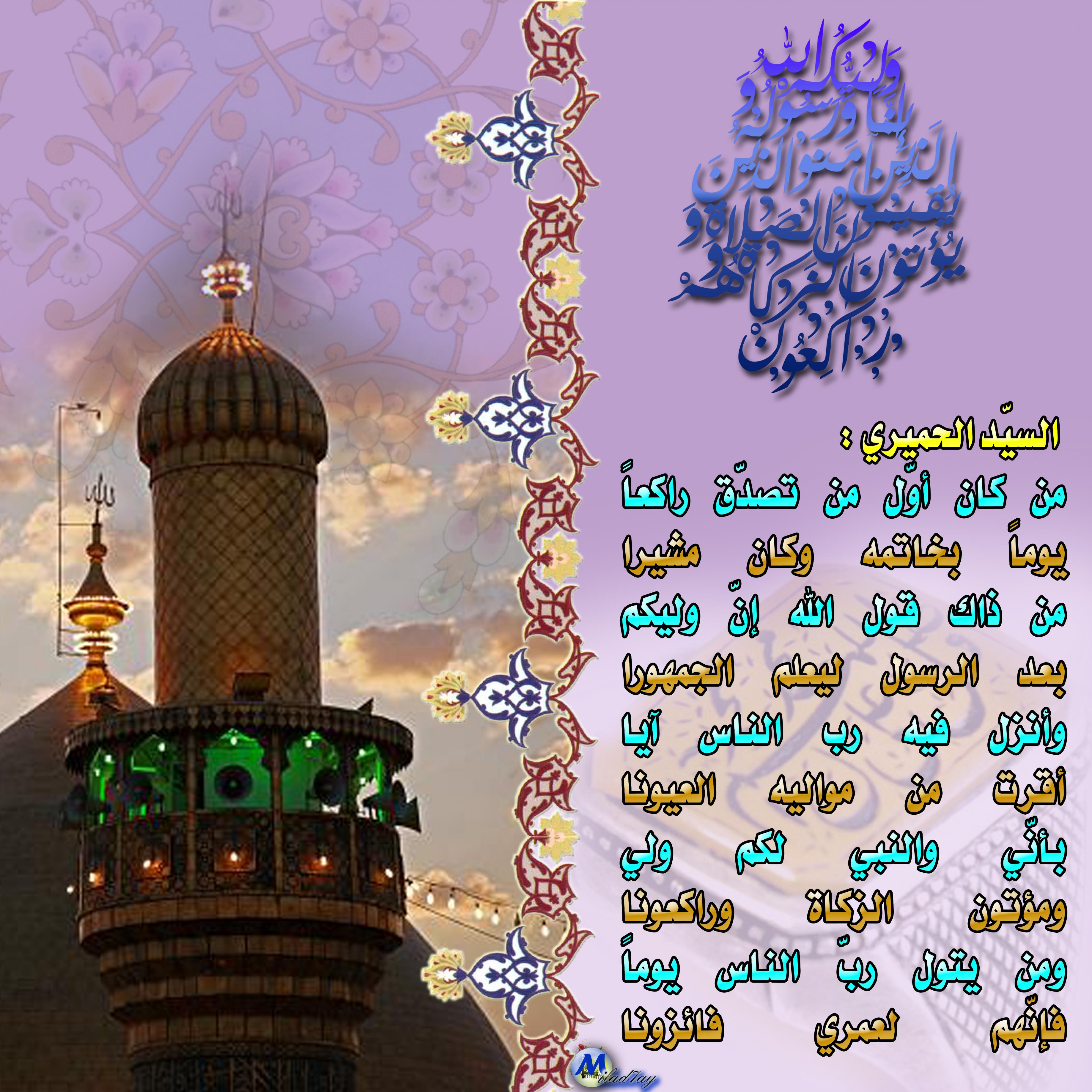 (إنما وليّكم الله ورسوله والذين آمنوا الذين يقيمون الصلاة ويؤتون الزكاة وهم راكعون)