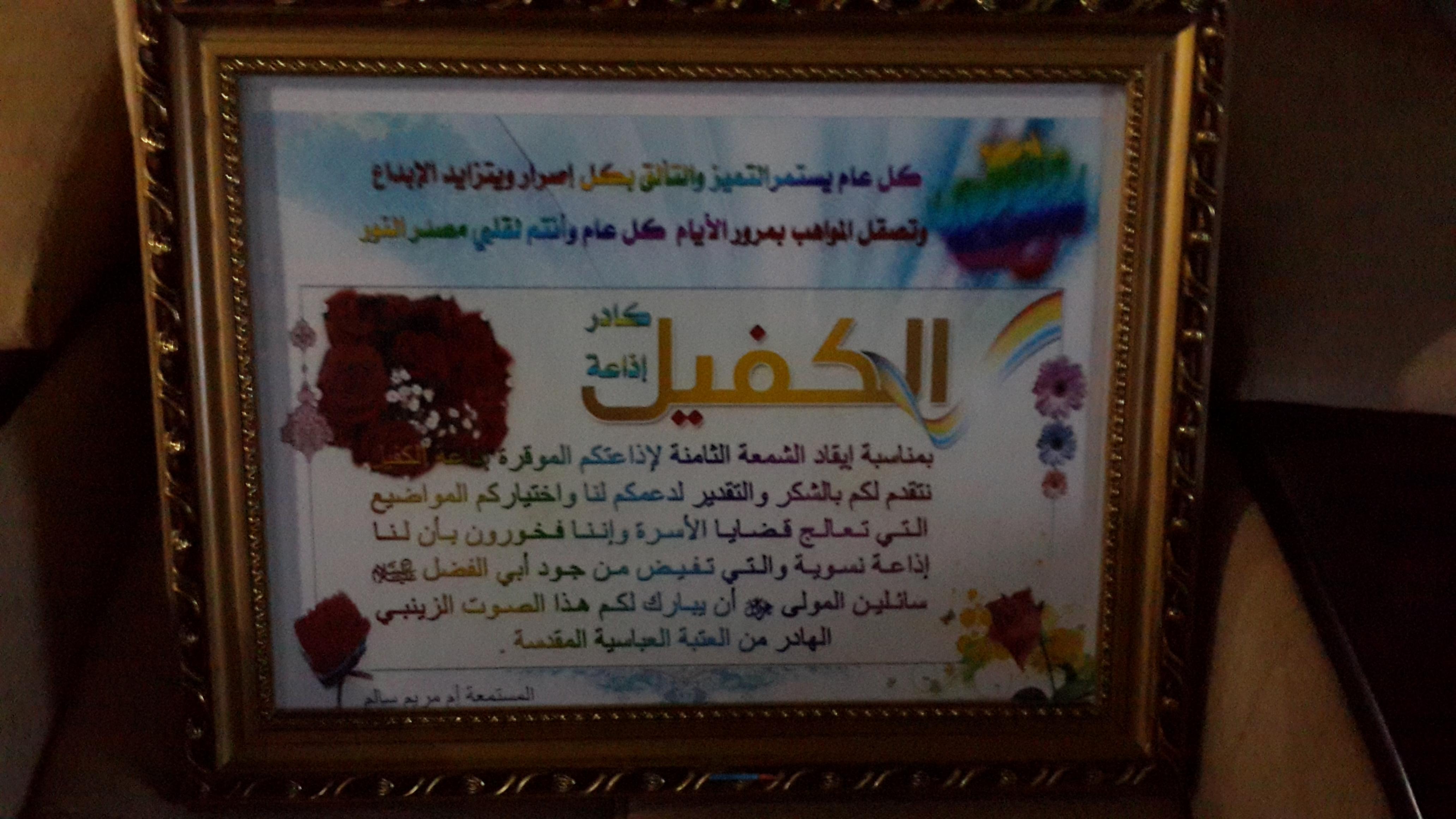 بتوفيق من الله ومنه اقيمت احتفالية اذاعة الكفيل بمناسبة دخولها عامها الثامن في قاعة الامام الحسن (عليه السلام)