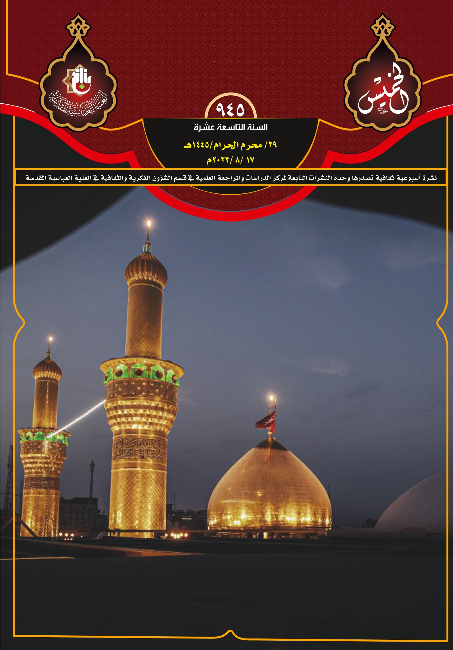 بفضل الله تعالى صدر اليوم الخميس: العدد الأسبوعي من نشرة الكفيل العدد ((930))، ونشرة الخميس العدد ((945))، نسأله تعالى أن تنال رضاكم وفيهما الفائدة المرجوة.