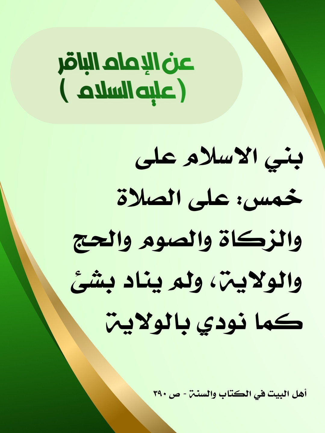 بني الاسلام على خمس على الصلاة والزكاة والصوم والحج والولاية