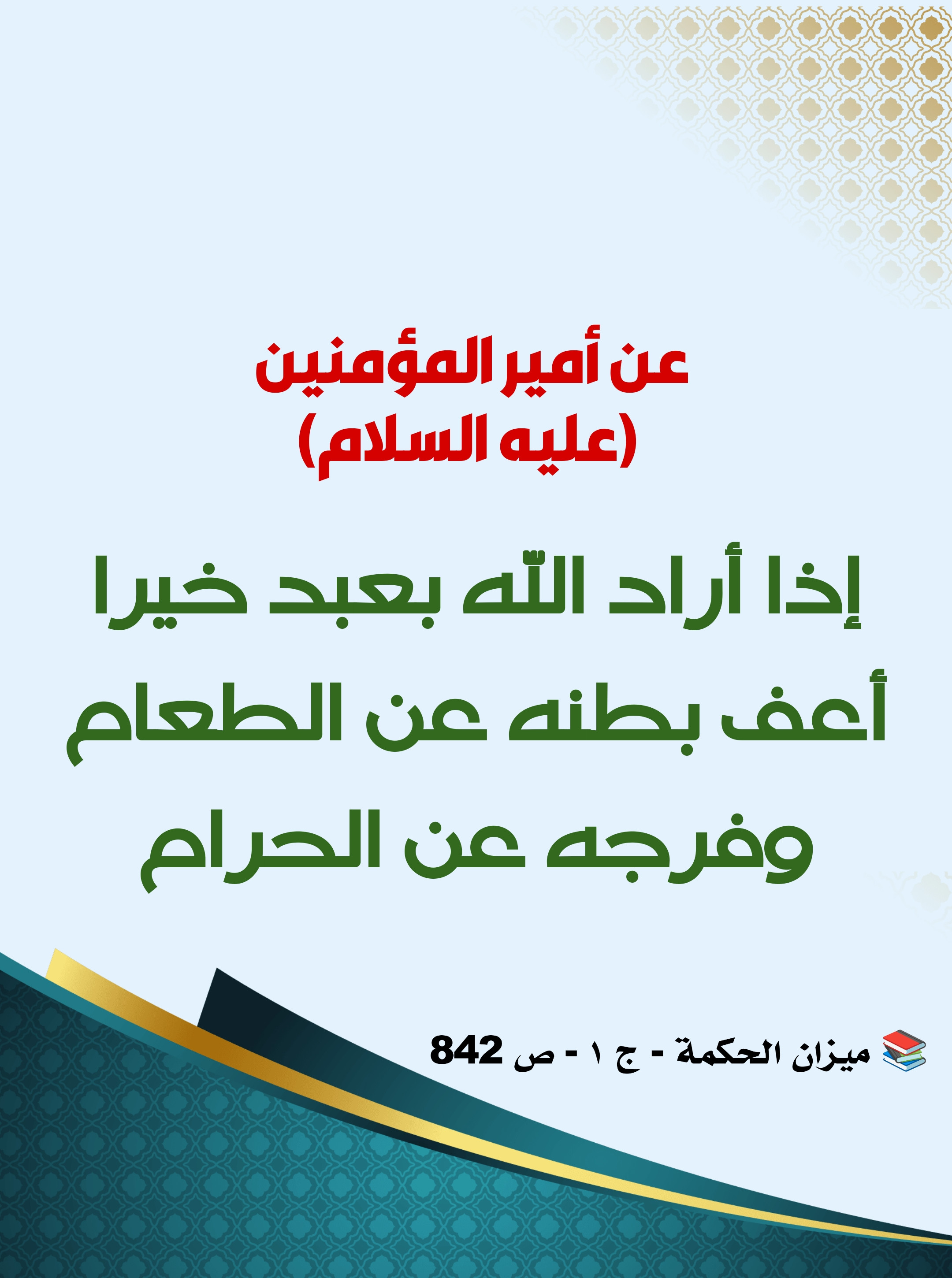 أذا اراد الله بعبد خيرا اعف فرجه عن الطعام وفرجه عن الحرام