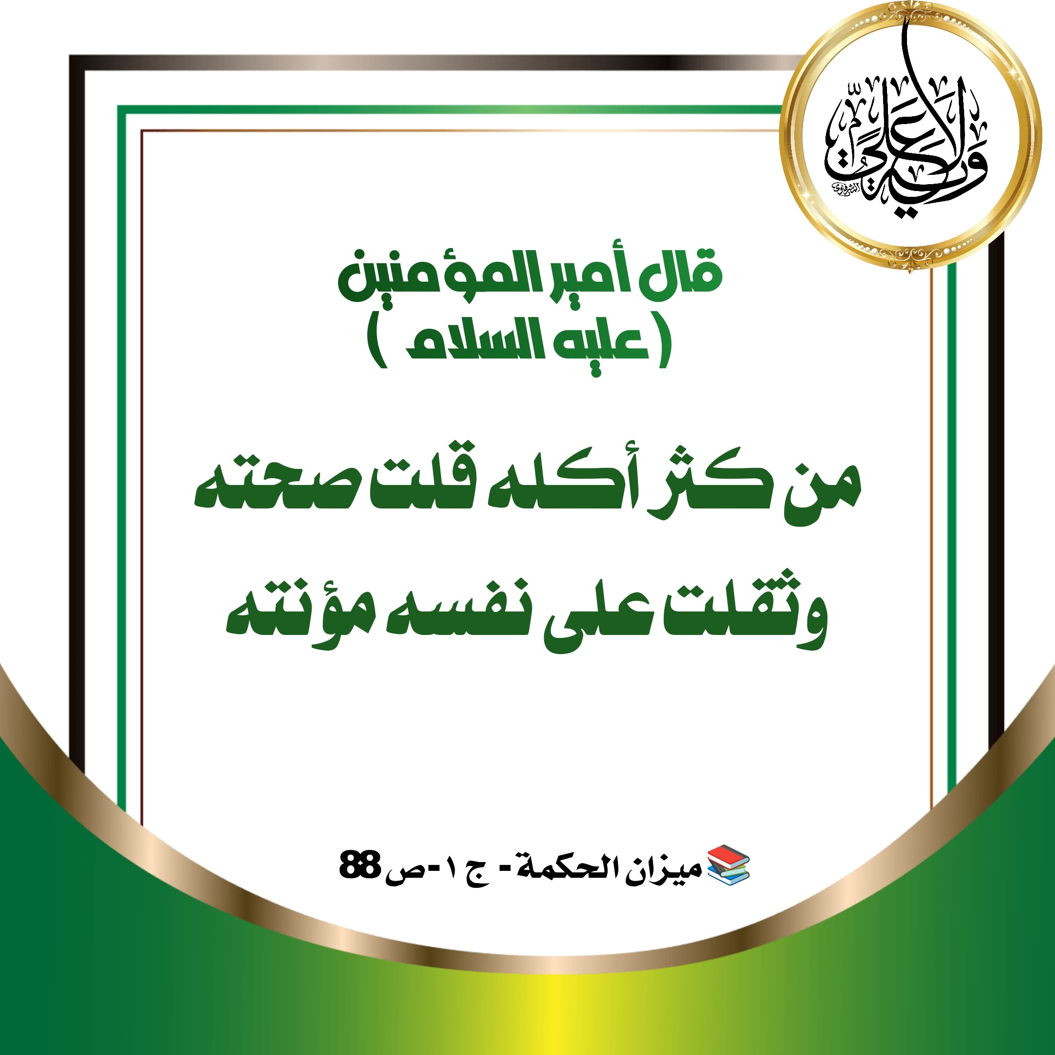 من كثر أكله قلت صحته وثقلت على نفسه مؤنته