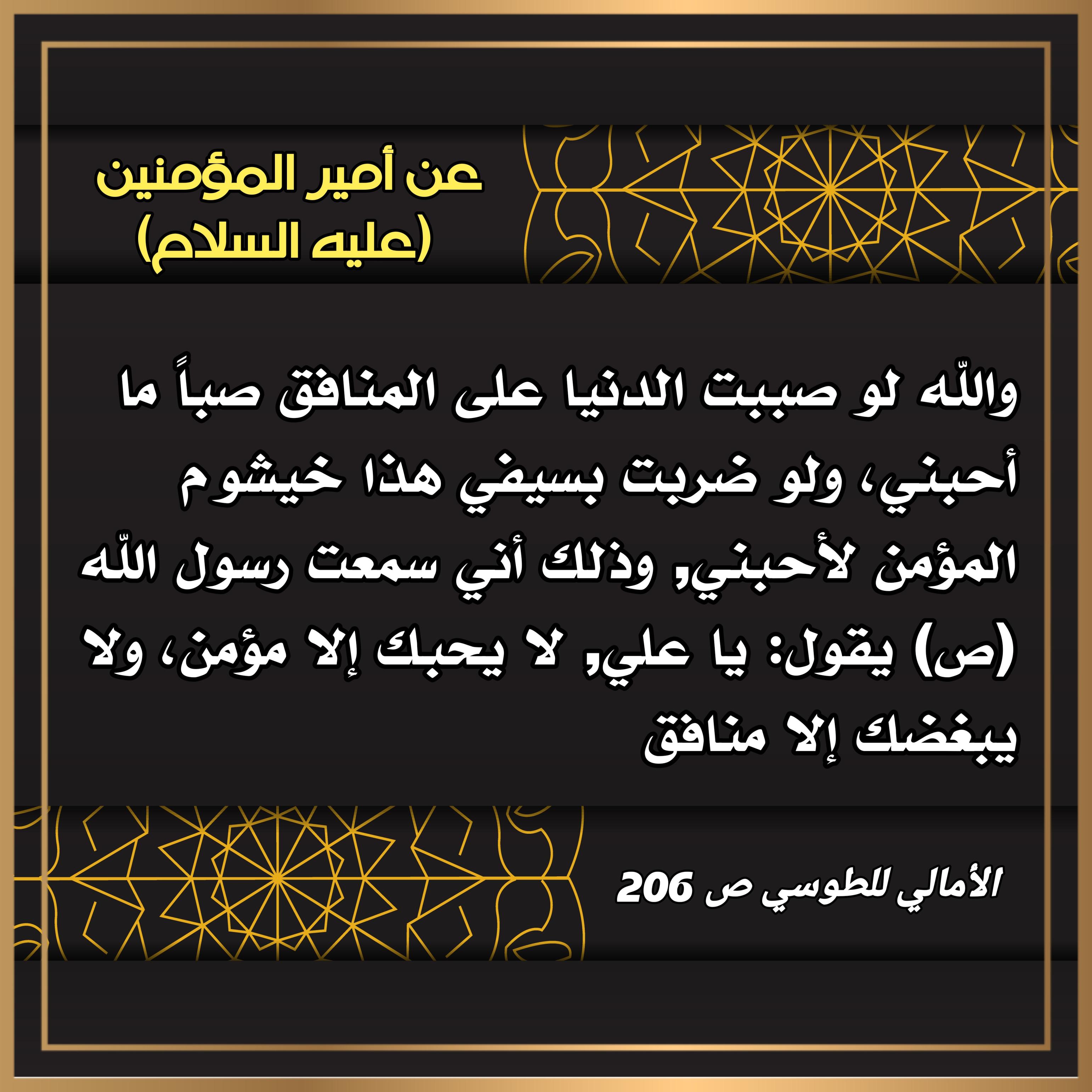والله لو صببت الدنيا على المنافق صبا مااحبني