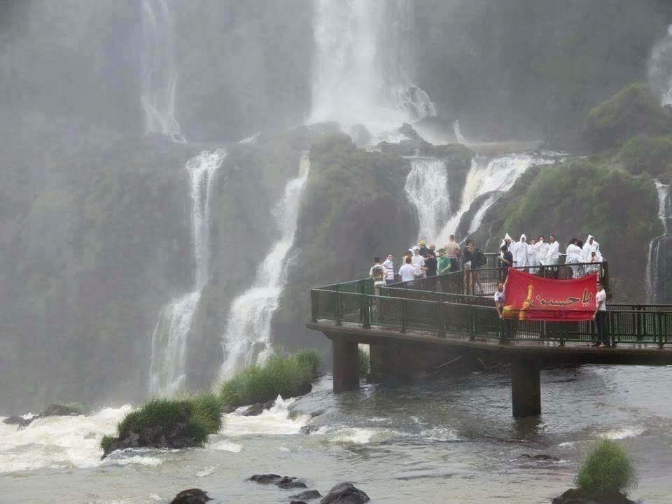رفع راية الامام الحسين (عليه السلام ) فوق شلالات كتراتس البرازيلية التي تعتبر من عجائب الدنيا